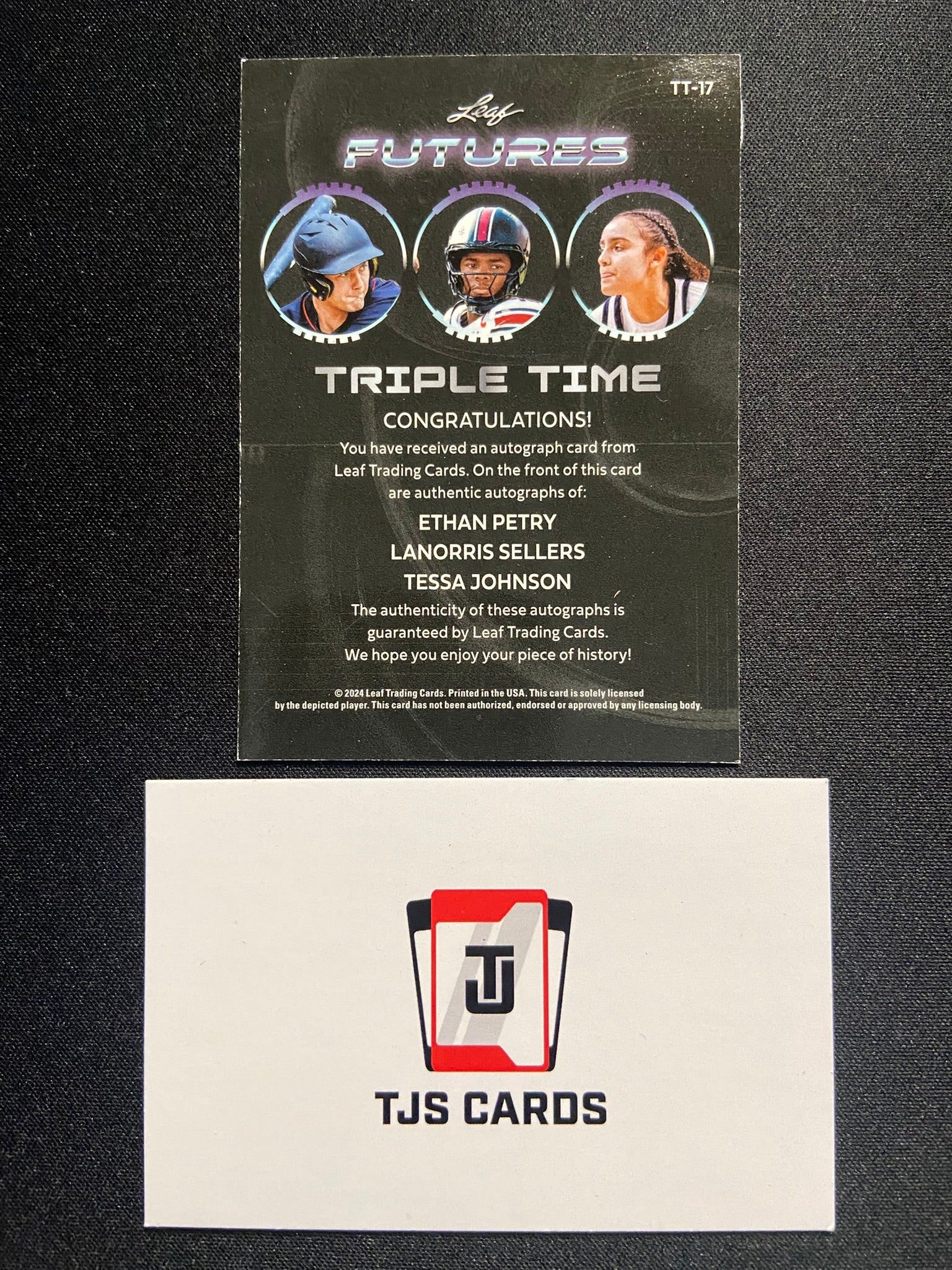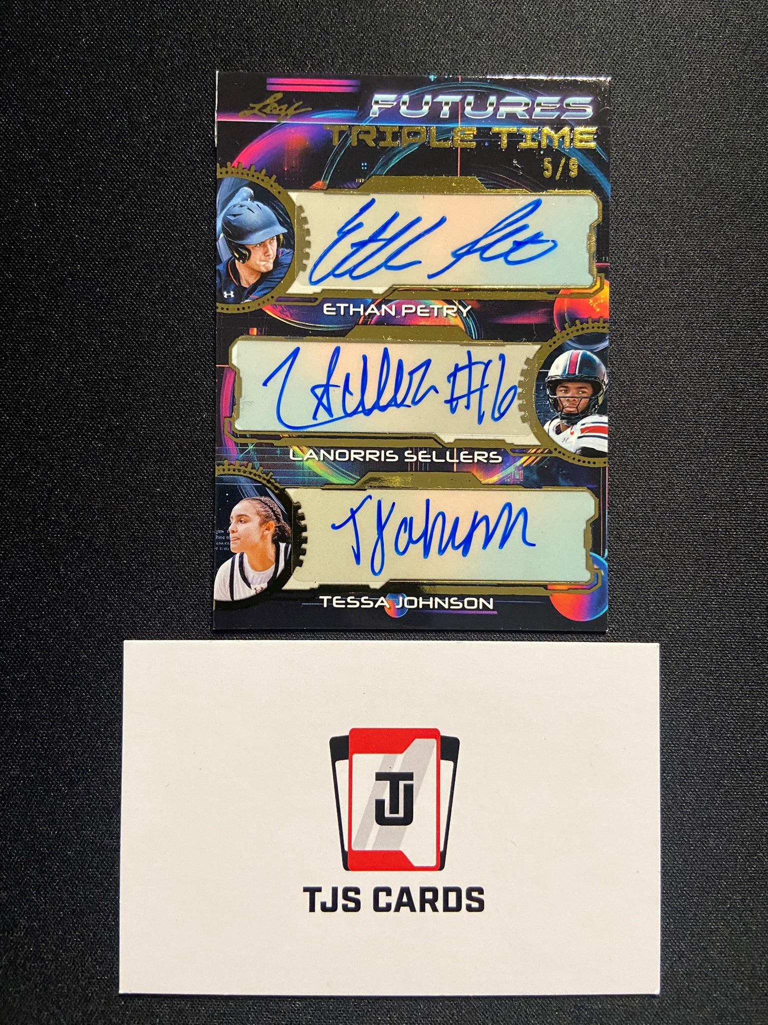 Ethan Petry / Lanorris Sellers / Tessa Johnson - Triple Auto /9 - Leaf Futures 2024