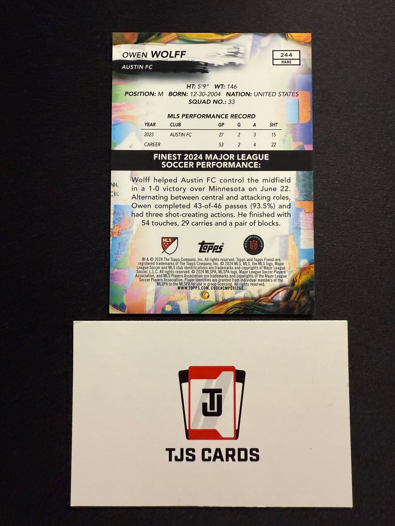 Owen Wolff - Blue /50 - TOPPS Finest MLS 2024
