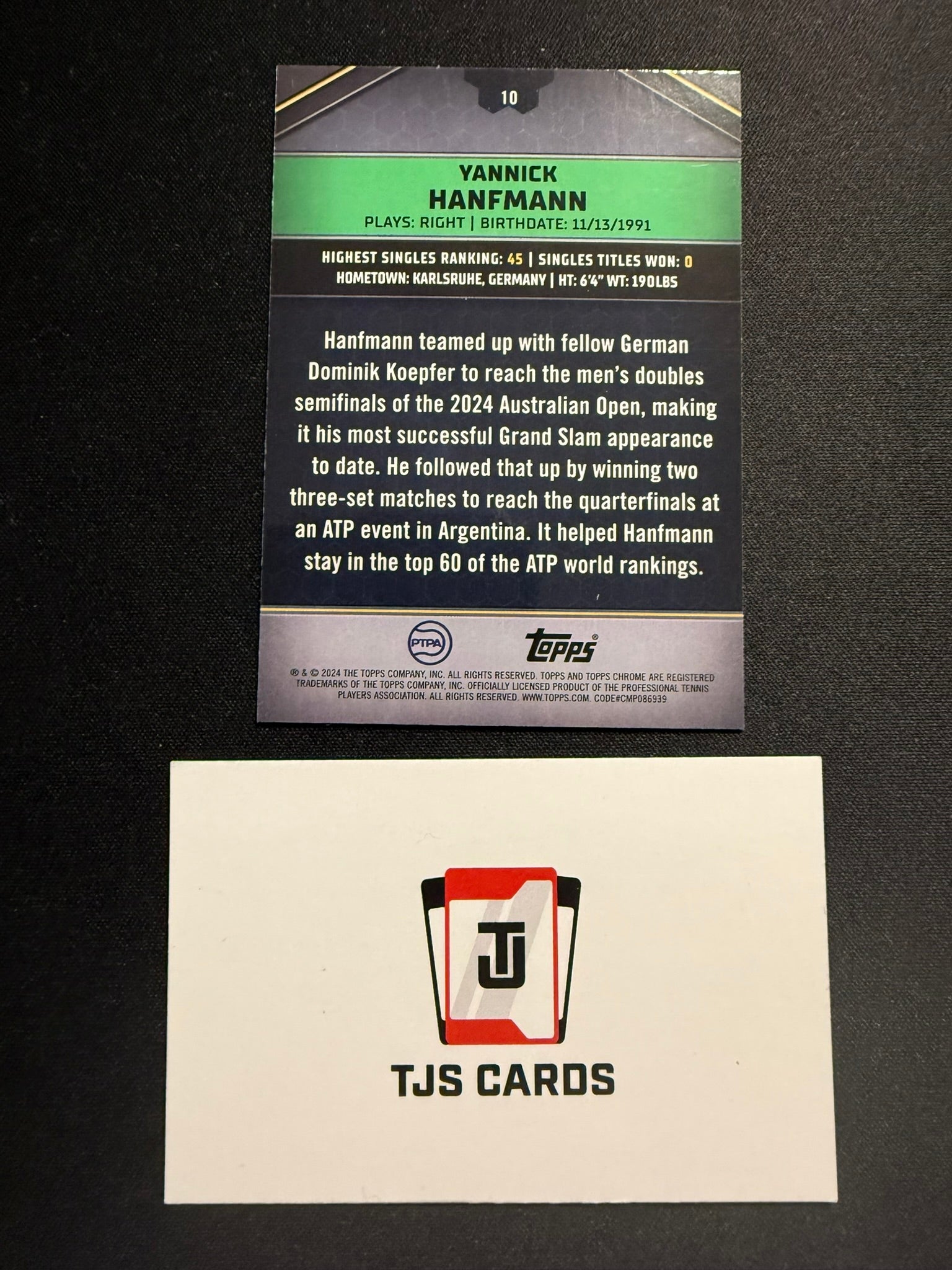 Yannick Hanfmann - Aqua /199 - TOPPS Graphite Tennis 2024